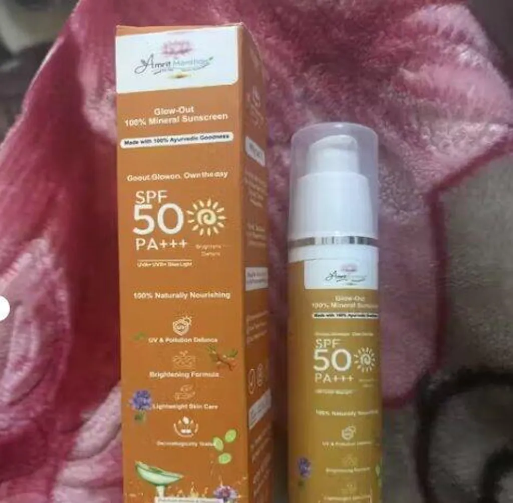 Amrit Manthan Glow out 100% Mineral sunscreen | Sunscreen SPF 50 PA+++ Fragrance & Alcohol Free | No White Cast